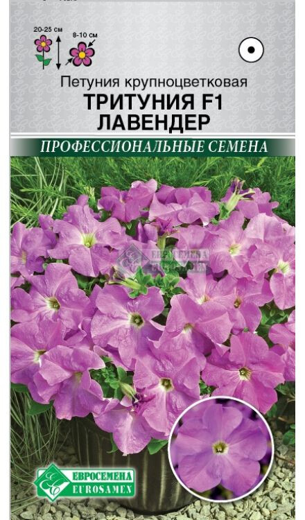 Петуния – растение из семейства паслёновых культур. В середине XVIII столетия был выведен первый в мире гибридный образец, сегодня петуния имеет более 30 основных видов и несколько десятков гибридных единиц. Петуния Тритуния – ярчайшая представительница огромного класса крупноцветковых петуний, отличающаяся максимальной однородностью и выравненностью растений по габитусу, потрясающе выглядит в цветниках открытого грунта. Компактность кустиков с хорошим боковым ветвлением и крупными цветками самой разнообразной окраски, неприхотливость, высокие декоративные качества и устойчивость к непогоде - вот основные характеристики данного вида. Благодаря ярким окраскам крупных цветков и равномерному цветению прекрасно смотрится и в вазонах и в напольных кашпо Отличный посевной материал с высокими показателями всхожести и сортовой чистоты!