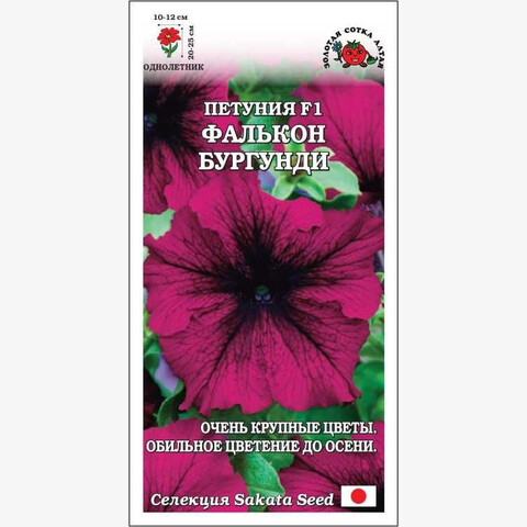 Гибриды серии Фалькон зацветают очень рано и равномерно, цветут невероятно обильно с весны и до середины, а иногда и конца осени. Кустики компактные и аккуратные. Очень крупные цветы винно-бордового цвета с темно-пурпурными прожилками распускаются в огромном количестве независимо от условий выращивания. Петунии этой серии одинаково прекрасны в цветниках, вазонах на ножке, кашпо и ящиках.