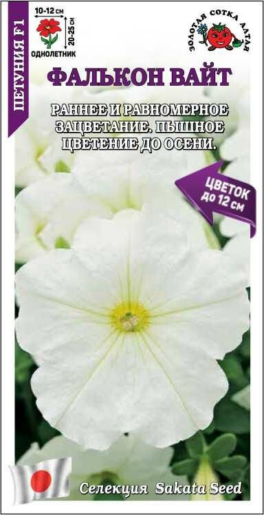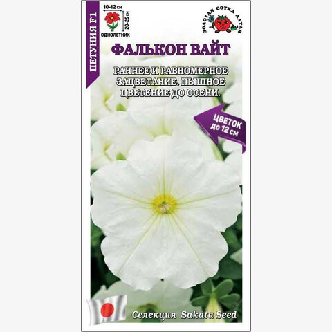 Гибриды серии Фалькон зацветают очень рано и равномерно, цветут невероятно обильно с весны и до середины, а иногда и конца осени. Кустики компактные и аккуратные. Белоснежные воронковидные цветы очень крупного размера распускаютсяв огромном количестве в независимости от условий выращивания. Петунии этой серии одинаково прекрасны в цветниках, вазонах на ножке, кашпо и ящиках.