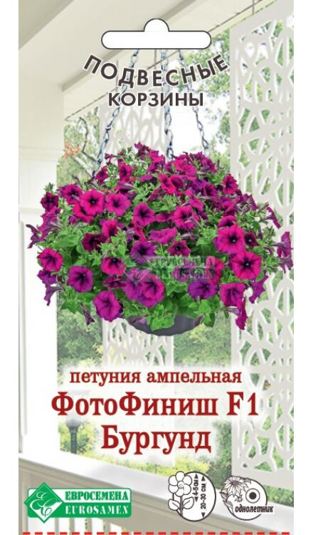 ФотоФиниш - совершенно новая серия ампельной петунии от компании Syngenta с идеальными показателями роста и цветения, шаровидной формой куста, выровненная по форме и времени цветения. Пониженная чувствительность к длине дня обеспечивает ей экстра раннее и программируемое цветение через 9-10 недель после посева. Растение формирует множество ярких цветков по разрастающимся длинным, до 65-75 см, побегам, которые полностью его покрывают, а также почву в открытом грунте, не повреждаются дождем и всегда опрятны и нарядны! Прекрасный вариант использования во всех видах озеленения: как в подвесных корзинах, контейнерах, цветочных кашпо, так и в различных цветниках открытого грунта. Продолжительное и обильное цветение, неприхотливость в уходе, устойчивость к непогоде и высокая декоративность- отличительная особенность данной серии петунии.