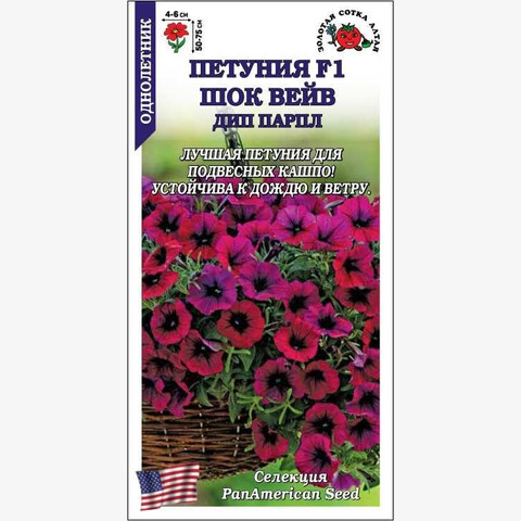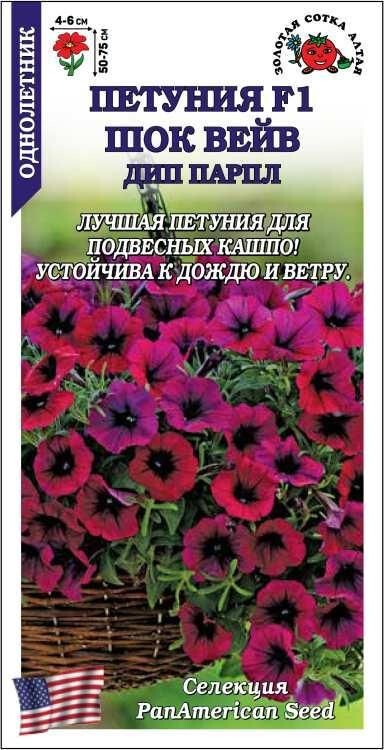 Восхитительная длинноплетистая петуния, устойчивая к дождю, жаре и сильному ветру. Растения при высоте до 25 см образуют плети длиной 35-45 см, расстилающиеся ковром или ниспадающие каскадом. Цветы многочисленные, душистые, насыщенного пурпурного цвета с более темным оттенком в центре. Петунии серии Шок Вейв – шикарное украшение подвесных кашпо и вазонов на высокой ножке, клумб и рабаток.
