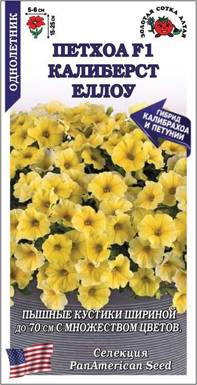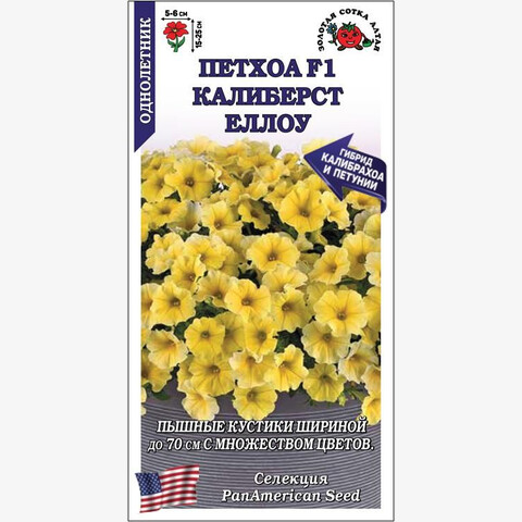 Уникальное растение – межвидовой гибрид петунии и калибрахоа, объединивший их лучшие качества: стойкость к непогоде, отличное развитие при любой длине светового дня, роскошное цветение и стойкость окраски. Растение ветвистое, при высоте 15- 25 см разрастается вширь до 70 см, густое, с некрупными аккуратными листьями и многочисленными насыщенно-желтыми цветами. Используется в цветниках, великолепно подходит для вазонов и подвесных корзин.