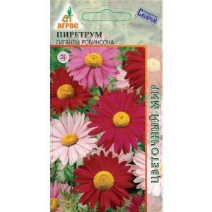 Многолетнее растение. Стебли прямостоячие, листья в прикорневой розетке, сложноперистораздельные. Цветочные корзинки одиночные, очень крупные (8-10 см в диаметре), розовой и пурпурно-красной окраски, на длинных крепких цветоносах. Пиретрум может расти как на открытых участках, так и в затенении. К почве нетребователен, растет на любой садовой почве. В культуре прост. Морозостоек. Отзывчив на внесение удобрений. Весной и осенью посадки мульчируют. Семена на рассаду высевают в середине апреля или в открытый грунт с мая. Возможны подзимние посевы. Всходы появляются на 14-20 день при температуре 18-20°С. Эффектен в группах, миксбордерах, около кустарников. Хорош в срезке. 80 III-IV V- V-VII;IX 30x40 VII-VIII
