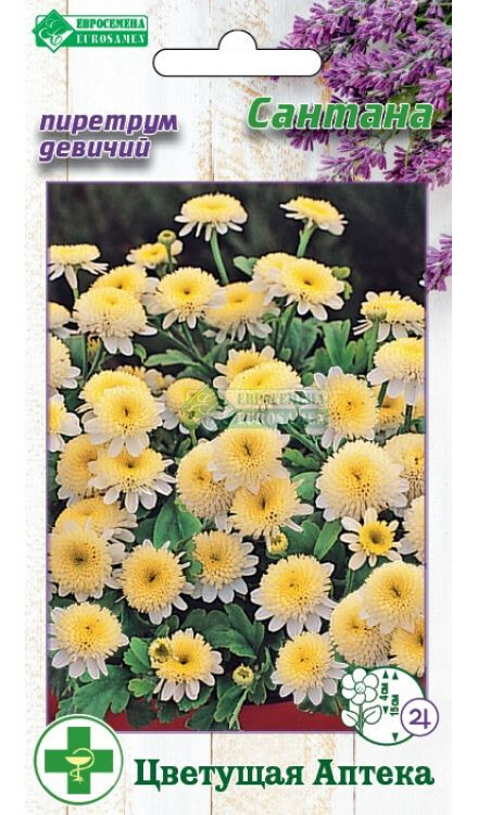 Добро пожаловать в яркий мир очаровательных пиретрумов, способных удивлять своей эффектной внешностью! Пиретрум девичий - цветущее растение семейства маргариток, сложноцветных, традиционно лекарственное, первоначально произрастающее на Балканах и Кавказе и используемое обычно для предотвращения мигрени. Оно известно под несколькими названиями: пиретрум девичий, матрикария исключительная, хризантема девичья и танацетум. Сантана- компактная ромашка с желтыми ароматными цветками, идеально подойдет при создании низкорослых клумб, украшения балконных ящиков или контейнеров, для высадки в вазоны. Это многолетнее холодостойкое, неприхотливое растение, в России культивируется как однолетнее. Оригинальные желтые соцветия-корзинки махровые, шаровидной формы. С помощью этого пиретрума можно создать замечательную клумбу, которая станет предметом всеобщего восхищения. Хорошо сочетается с гелиотропом, сальвией, бархатцами.