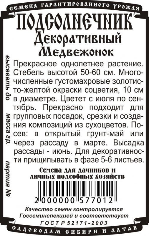 Прекрасное однолетнее растение для групповых посадок и срезки. Стебель высотой 50-60 см. Многочисленные махровые золотисто-желтые соцветия, диаметром до 10 см придают растению декоративный вид. Цветет с середины июля по сентябрь. Семена высевают в мае в открытый грунт на глубину 1,5 см. Расстояние между растениями 25 см.