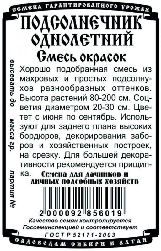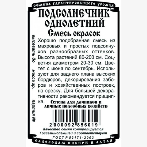 Подсолнечник Смесь окрасок 0,2гр Б/П/ Деметра