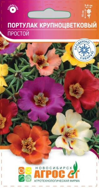 Однолетник со стелющимися стеблями, с сочными, игловидными листьями и крупными одиночными цветками диаметром до 3-6 см. Цветки немахровые с белой, кремовой, желтой, оранжевой, розовой, лососевой или красной окраской лепестков. Портулак светолюбив, теплолюбив и засухоустойчив. Не любит тяжелых и кислых почв. Плохо цветет на почвах с избытком питательных веществ и в пасмурную погоду. До начала цветения 1-2 раза подкармливают комплексным минеральным удобрением. Поливают только при сильной засухе. Семена на рассаду высевают в конце марта - первой половине апреля. Семена рассыпают по поверхности почвы. При температуре 18-20°С всходы появляются через 7-14 дней. Высаживают портулак на клумбы, в рабатки, рокарии, ковровые цветники. Его можно выращивать в вазах, контейнерах, балконных ящиках. Хорош он для декорирования сухих откосов и подпорных стенок. 15 III-IV - V-VI 15-20 VI-IX