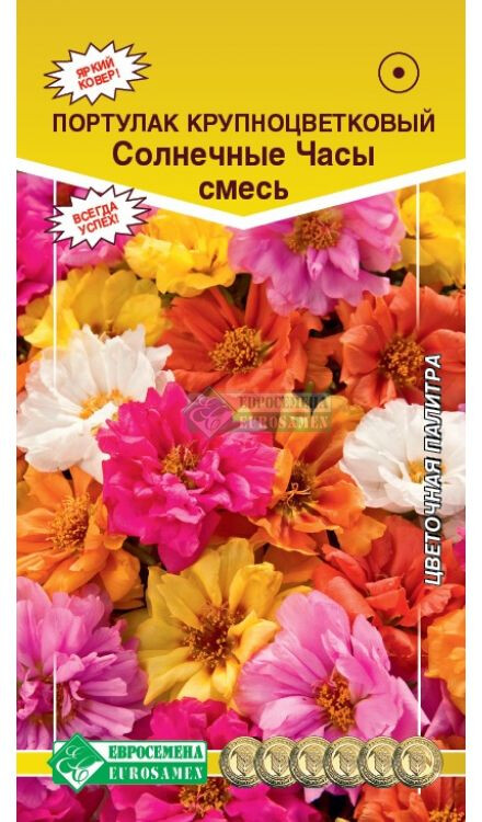 Портулак – уникальный летник родом из Бразилии и Аргентины. Уникальность его заключается не только в том, что это растение в ландшафтном дизайне не знает себе равных среди стелющихся сезонных акцентов. Легендарные коврики способны удивить даже искушенного садовода своей красотой и многоцветностью, в садовой форме выращивается как однолетник, но главное их достоинство – поразительная выносливость, засухоустойчивость и нетребовательность. Портулак создает красочные ковры даже в самой бедной почве. Растения обладают мясистыми стелющимися стеблями. Диаметр пестрых цветков достигает 5 см, в солнечную погоду они раскрываются, демонстрируя все свое великолепие. Принято высевать этот вид портулака, смешивая сорта с разными оттенками лепестков на одной клумбе. Солнечные часы- эффектная смесь портулака с крупными и очень яркими цветками самой разнообразной окраски. Шикарно смотрится в вазонах, ящиках, на переднем плане цветников и напольных кашпо.