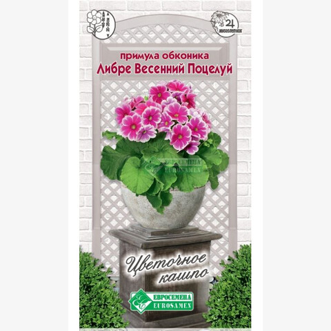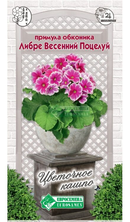Субтропическая гостья, примула обконика, не является первоцветом в буквальном смысле этого слова, хотя и относится к многочисленному семейству Первоцветные. В отличие от садовых первоцветов, открывающих весну, примула обконика – многолетнее комнатное растение, цветущее практически круглый год. Она способна создать радостное весеннее настроение среди серых осенних будней, разбавить весенними красками монохромность зимних дней и украсить любой интерьер. Интерес к данной культуре не угасает, поэтому каждую весну мы обязательно говорим о ней, а желание поселить эту красавицу у себя становится навязчивым. Цветочек за цветочком поселяются в домах все новые и новые примулы, образуя уникальные коллекции из них. Нежно-розовые, белые, лиловые, желтые, красные, синие зонтики соцветий украшают пышную розетку из крупных ворсистых листьев с февраля по декабрь, с небольшим летним перерывом. Весенний Поцелуй- примула с крупными двухцветными цветками. Они, словно драгоценные камни в дорогой оправе, покрывают каждый побег и образуют шикарные соцветия-корзинки, являющиеся главным украшением вазона или кашпо. Не выделяет вещество примин, провоцирующее аллергические реакции.