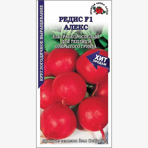 Ультраскороспелый гибрид для круглогодичного выращивания в теплицах благодаря устойчивости к пониженной освещенности, а так же для многократного посева в весенне-летний период в открытый грунт. От массовых всходов до сбора урожая 16-18 дней. Корнеплоды округлые, ярко-красные. Мякоть сочная, хрустящая, отличного вкуса.