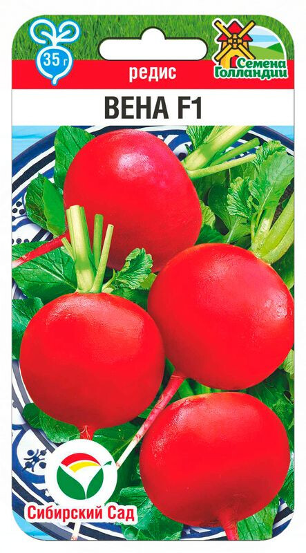Раннеспелый всесезонный гибрид голландской селекции с особо крупными корнеплодами массой до 35г. Образует аккуратную розетку и быстро формирует красивые корнеплоды ярко-красного цвета. Может выращиваться в открытом грунте в течение весенне-летнего вегетационного периода. Не дрябнет, устойчив к цветушности. Рекомендуется для выращивания во всех климатических зонах РФ. Розетка листьев полупрямостоячая. Корнеплоды округлые, красные с плоской головкой, диаметром до 5см, массой 25-35 грамм. Мякоть белая, нежная, слабо-острая, сочная с отличными вкусовыми качествами. Корнеплоды высокотоварные, отличного качества. Хорошо подходят для рыночным продаж. Урожайность 2,2-2,5 кг/м2.