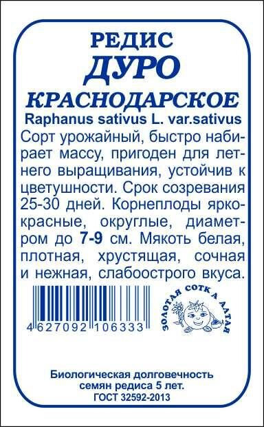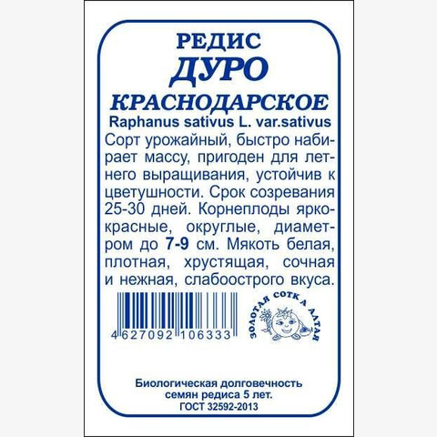 Великолепный урожайный сорт, быстро набирающий массу. От всходов до созревания 25-30 дней. Корнеплоды ярко-красные, округлые, крупные, отдельные диаметром до 7-9 см. Мякоть белая, плотная, хрустящая, очень сочная и нежная, слабоострого вкуса. Сорт дружно формирует корнеплоды, устойчив к цветушности, одеревенению и дряблению, пригоден для летнего выращивания.