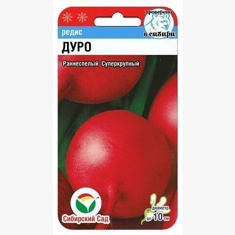 Раннеспелый суперкрупный сорт редиса (срок 20-25 дней). Корнеплоды розово-красные, диаметром до 10 см. Мякоть белая, сочная, сладкая, слабоострого вкуса. Сорт не склонен к цветушности, отличается стабильной урожайностью, способностью длительное время сохранять товарные качества плодов. Посев производят с ранней весны до онца августа на глубину 1-2 см по схеме 7х7 см. Для ускорения процесса всхожести семян, оздоровления растений, улучшения завязываемости плодов рекомендуется использовать специально разработанные стимуляторы роста и развития растений.