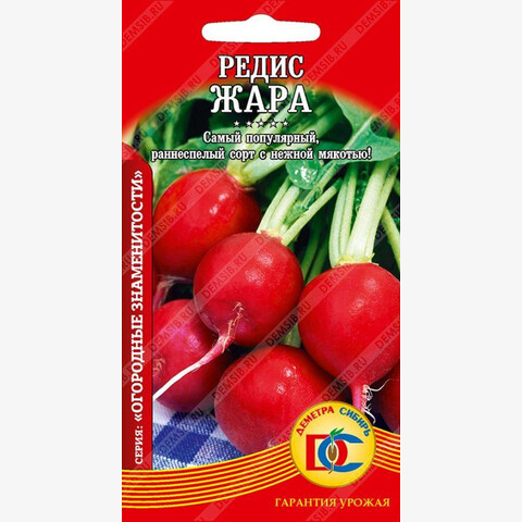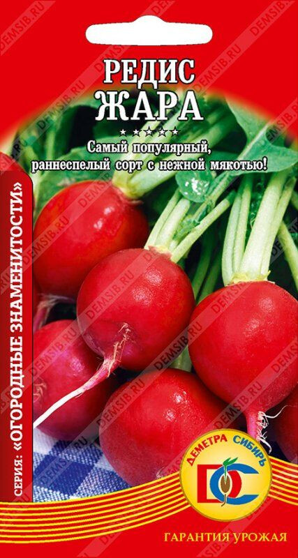 • Скороспелый (18-25 дней) высокоурожайный сорт. Корнеплоды темно-красные, округлые, почти полностью погружены в почву. Мякоть белая, плотная, нежная, сочная, приятного слабоострого вкуса.