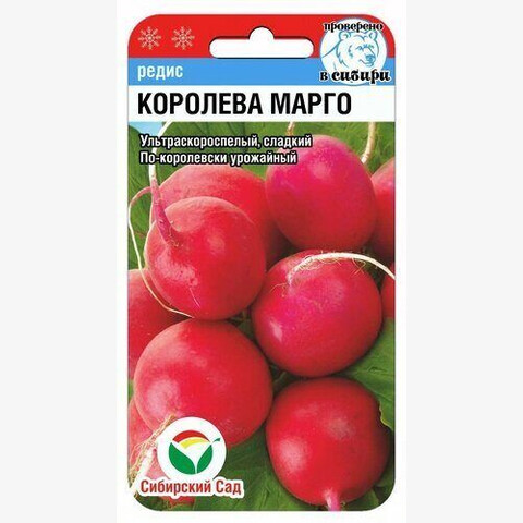 Розетка листьев низкая, компактная. По-королевски красивые корнеплоды: с блеском, ровные, округлой формы, темно-красного цвета, диаметром до 3,5 см, массой до 20 г. Мякоть белоснежная, плотная, хрустящая, нежная и очень сочная, с повышенным содержанием витаминов. Не образует пустот, не дрябнет и не грубеет. Сорт устойчив к цветушности, не растрескивается хорошо переносит высокие и низкие температуры. Посевы можно производить в течение весны и лета, с апреля по август включительно. Хорошо растет как в открытом грунте, так и в теплицах, в условиях пониженной освещенности. Товарная урожайность 2,5-3,4 кг/м2. Лучшие по качеству корнеплоды получаются на освещенных и хорошо увлажненных участках. Требует равномерного полива весь период вегетации и прореживания в начальный период роста. Рекомендуется для всех регионов.