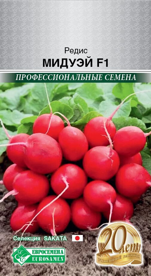 Редис — один из первых весенних плодов, как радостный привет из наступающего лета, который появляется в нашем меню после долгой зимы, поэтому он является очень актуальным в начале весеннего периода. Этот сочный, приятный на вид корнеплод со сладковатой остротой насыщает организм витаминно-минеральным комплексом, богат клетчаткой. Мидуэй- новый раннеспелый гибрид редиса от компании Саката. Вегетационный период около 23 дней от появления всходов. Гибрид хорошо адаптируется к различным условиям выращивания и хорошо переносит пониженные температуры. Корнеплоды округлой формы диаметром 3-5 см. Окраска шейки и коры насыщенно-красного цвета, а мякоть привлекательного белого. Не пустеет. Устойчив к стрелкованию.