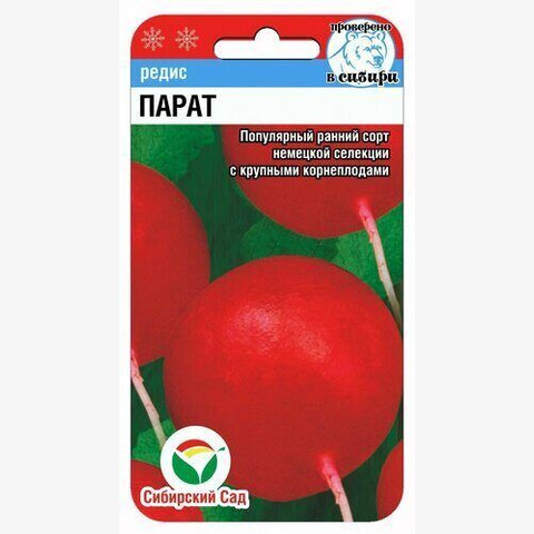 Один из лучших ранних рыночных сортов редиса с крупным округлым корнеплодом ( 30-60г) равномерной ярко-красного цвета. Имеет высокие вкусовые качества. Мякоть белая, нежная, сочная, не дрябнет. Поверхность корнеплода красивая, гладкая. Сорт устойчив к цветущности и дряблению, пригоден для посева в ранневесенние и летние сроки. Для ускорения процесса всхожести семян, оздоровления растений, улучшения завязываемости плодов рекомендуется использовать специально разработанные стимуляторы роста и развития растений