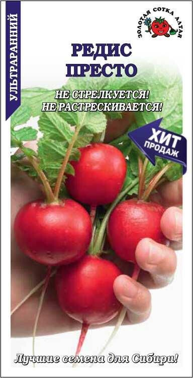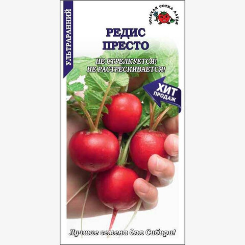 Ультраранний высокопродуктивный сорт. От массовых всходов до начала сбора урожая 16-18 дней! Корнеплоды ярко-красные, округлой формы, с тонкой нежной кожицей. Мякоть белая, очень сочная, хрустящая, деликатесного вкуса. Сорт идеален для раннего потребления. Не стрелкуется! Не растрескивается!