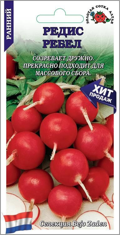 Сорт раннего срока созревания для открытого и защищенного грунта. Листовая розетка сильная, небольшого размера. Корнеплоды выравненные, округлой формы, ярко-красные, массой 20-25 г, долго сохраняют товарный вид, устойчивы к дряблению и пригодны для дальней транспортировки. Мякоть белая, очень сочная, нежная, хрустящая и удивительно вкусная. Сорт устойчив к цветушности, дружно формирует высокий урожай, прекрасно подходит для массового сбора пучками.