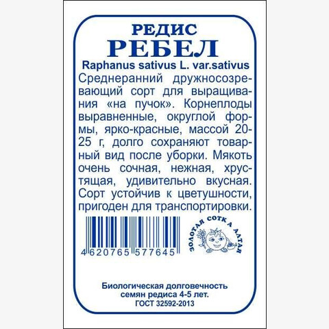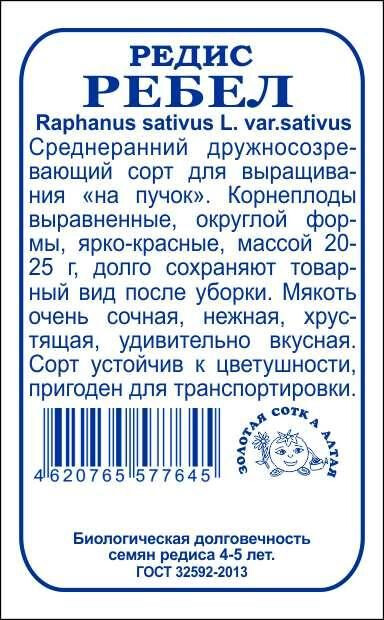 Сорт раннего срока созревания для открытого и защищенного грунта. Листовая розетка сильная, небольшого размера. Корнеплоды выравненные, округлой формы, ярко-красные, массой 20-25 г, долго сохраняют товарный вид, устойчивы к дряблению и пригодны для дальней транспортировки. Мякоть белая, очень сочная, нежная, хрустящая и удивительно вкусная. Сорт устойчив к цветушности, дружно формирует высокий урожай, прекрасно подходит для массового сбора пучками.