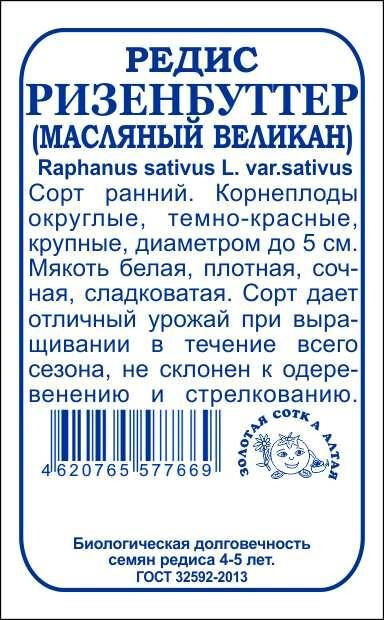 Сорт раннеспелый. От всходов до созревания 20-25 дней. Корнеплоды округлой формы, крупные, массой 25-40 г, диаметром до 5 см, темно-красные. Мякоть белая, нежная и сочная, сладковатая, превосходного вкуса. Сорт дает отличный урожай при выращивании в течение всего сезона, не склонен к одеревенению и стрелкованию.