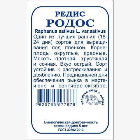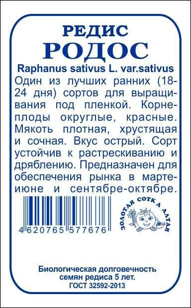Один из лучших ранних (18-24 дня) сортов для выращивания под пленкой. Корне-плоды округлые, красные. Мякоть плотная, хрустящая и сочная. Вкус острый. Сорт устойчив к растрескиванию и дряблению. Предназначен для обеспечения рынка в марте-июне и сентябре-октябре.