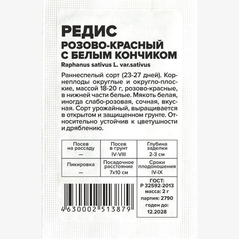 Редис Розово-красный с бел.кончиком/Сем Алт/бп 2 гр.