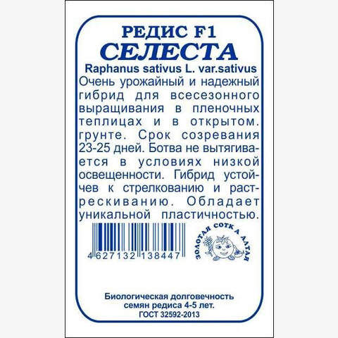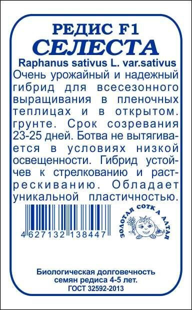 Очень урожайный и надежный гибрид для всесезонного выращивания в открытом грунте и парниках. От всходов до уборки 23-25 дней. Ботва не вытягивается при низкой освещенности. Корнеплоды округлые, массой 18-25 г, красивые, отлично сохраняют цвет и блеск после мойки и при транспортировке. Мякоть белая, нежная, сочная, слабоострого вкуса. Гибрид устойчив к стрессовым факторам, стрелкованию и растрескиванию. Пригоден для реализации в пучках.