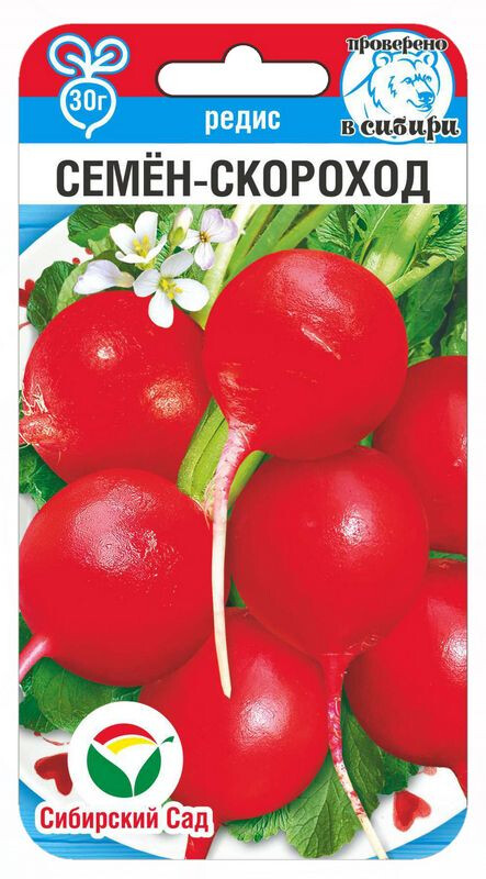 Ранний (23-25 дней) сорт-скороход сибирской селекции с крупными красными корнеплодами. Всесезонный, устойчив к стрелкованию, может выращиваться в течение всего летнего периода с весны до поздней осени. Сорт стрессоустойчив, хорошо выдерживает погодные условия Сибири. Ценится за высокие ранние урожаи, товарность плодов, пригодность для реализации на рынке свежей продукции. Рекомендуется для выращивания в открытом грунте и пленочных теплицах для получения супер ранних урожаев. Корнеплоды округлые, насыщенно-красного цвета, диаметром 4-5см, массой 20-30г, не растрескиваются. Мякоть белая, сочная, слабоострого вкуса без горечи, хрустящая, без грубых волокон и пустот. Урожайность товарных корнеплодов до 3 кг/м2.