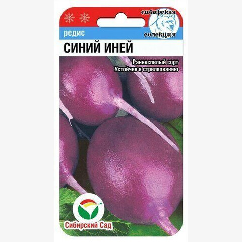 Новый раннеспелый сорт сибирской селекции с оригинальной окраской плодов. Срок созревания 20-25 дней. Корнеплоды сине-фиолетого цвета, овальной формы, массой до 25 г, долго не дрябнут. Мякоть плотная, хрустящая, нежная и сочная. Сорт практически не подвергается стрелкованию, поэтому пригоден для выращивания в течение всего лета. Семена высеивают в ранневесенние сроки по мере созревания почвы, либо летом. Глубина заделки семян 1,5-2 см. Для ускорения процесса всхожести семян, оздоровления растений, улучшения завязываемости плодов рекомендуется использовать специально разработанные стимуляторы роста и развития растений.