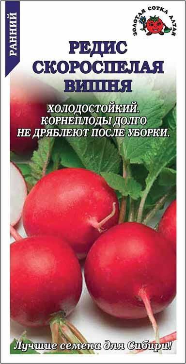 Скороспелый холодостойкий сорт. Корнеплоды округлые, красные, массой 15-20 г, без пустот, долго не дряблеют после уборки. Мякоть сочная, нежная, хрустящая, слабоострого вкуса. Сорт обладает устойчивостью к цветушности, подходит для выращивания в несколько сроков в течение сезона.