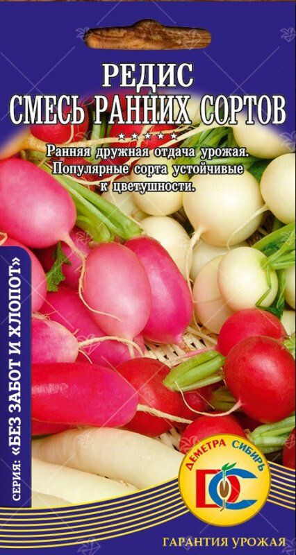 Чудесная смесь редисов для получения ранней продукции,с дружной отдачей урожая и получения сказочной грядки-радуги, которая доставит Вам удовольствие и удовлетворит запросы всей семьи. Корнеплоды выровненные, массой около 20 г, с нежной, сочной, хрустящей, удивительно вкусной мякотью. Эта уникальная смесь отличается высокой урожайностью, прекрасными вкусовыми и товарными качествами корнеплодов, устойчивостью их к цветушности и дряблению.