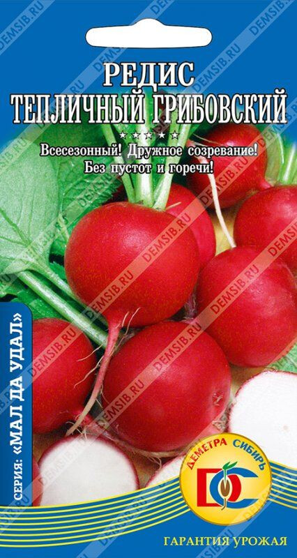 Скороспелый (18-25 дней), очень урожайный сорт, с дружным созреванием и устойчивостью к стрелкованию. Корнеплоды округлой формы, массой 20-25 г, имеют окраску от темно-красной до малиновой. Мякоть белая, сочная, хрустящая. Благодаря маленькой листовой розетке требует не большую площадь питания. Очень теневынослив. Пригоден для выращивания в открытом грунте, а в ранне весенний период под укрытием.