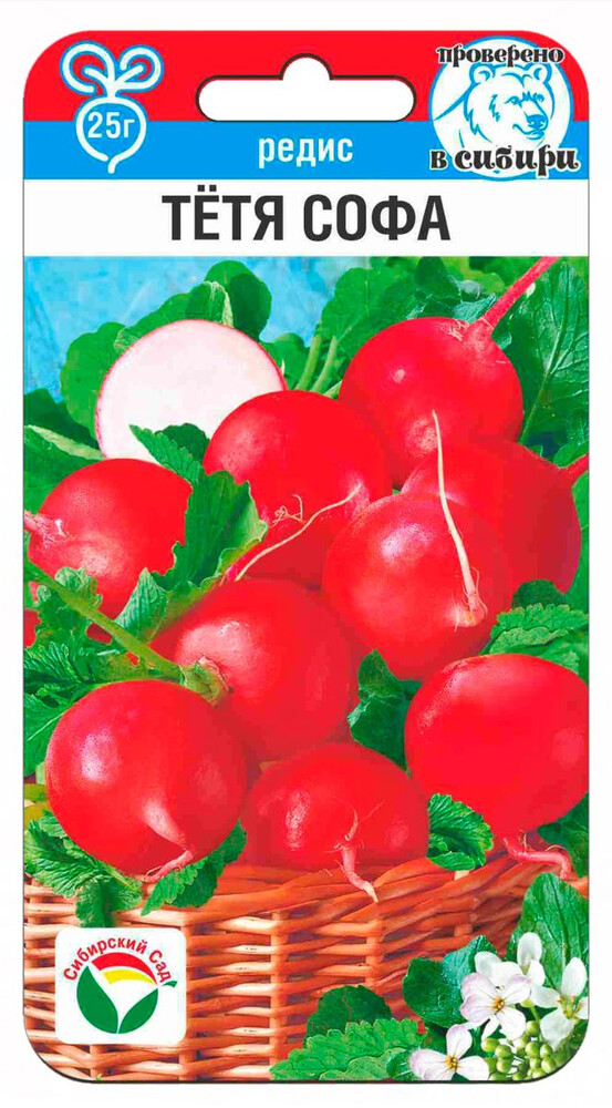 Раннеспелый (18-23 дня) сорт редиса, отличается высокими вкусовыми качествами корнеплодов и дружной отдачей урожая. Прекрасно подходит для выращивания в открытом грунте, теплицах и под плёночными укрытиями. Сорт ценится за устойчивость к стрелкованию и растрескиванию, способность сохранять товарный вид даже при неблагоприятных условиях. Розетка полуприподнятая. Корнеплоды ярко-красного цвета, округлые, удлиненно-овальной формы, диаметром 3-4см, массой 20-25г. Кожура гладкая, блестящая с плотной кожицей. Мякоть белая, сочная, хрустящая, с мягким, слегка острым вкусом. Корнеплод полностью погружен в почву, легко выдергивается. Товарная урожайность 1.6–1.8 кг/м2.