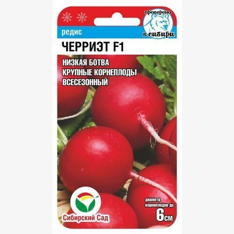 Ранний гибрид редиса (через 20-25 дней после появления всходов) отличается высокой урожайностью в зонах умеренного климатического пояса. Подходит для круглогодичной культуры, но особенно хорошо проявляет себя осенью. Позволяет собирать урожай даже при очень крупных размерах корнеплода, так как медленно образует пустоты. Розетка листьев полупрямостоячая, ботва короткая. Корнеплоды насыщенно-красные, выровненные, крупные и абсолютно одинаковые, до 3-6 см в диаметре, без пустот, плотные и сочные, массой до 50-70 грамм. Долго сохраняют товарные качества. Предназначены для употребления в свежем виде и салатах. Урожайность высокая, до 4 кг/м2. Вкусовые качества отличные, вкус среднеострый. Редис можно выращивать в течение всего весенне-летнего сезона. Для выращивания подходят рыхлые, плодородные, супесчаные или легкодоступные почвы. Посев в грунт производится на глубину 1 см. Предпочитает обильные и регулярные поливы.