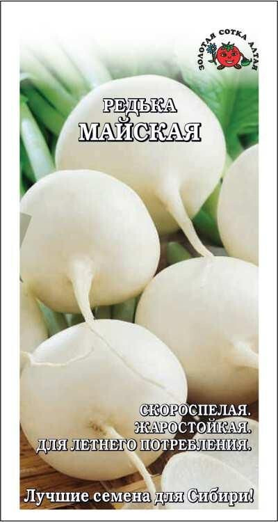 Сорт скороспелый. От массовых всходов до начала хозяйственной годности 55-65 дней. Корнеплоды белые, округло-овальной формы с плоской головкой, массой 80-150 г. Мякоть плотная, сочная, нежная, полуострого вкуса. Сорт рекомендуется для потребления в свежем виде в весенне-летний период, отличается жаро-и холодостойкостью.