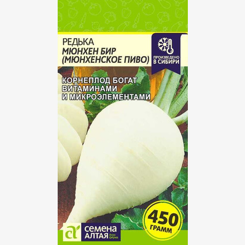 Раннеспелый (55-60 дней) сорт. Корнеплод удлиненно-эллиптический, белый. Мякоть плотная, сочная, без грубых волокон, массой 300-450 г. Для употребления в свежем виде и непродолжительного хранения. Место посадки: рыхлые плодородные легкие почвы с нейтральной реакцией среды. Может расти на тяжелых почвах. Размещают после любых овощных культур, кроме крестоцветных: капусты, репы, редиса, дайкона Освещение: требователен к свету, в тени дает длинную ботву и маленький корнеплод Предпосевная подготовка: не требуется Сроки посева: при прогревании почвы до 10°C Посев на рассаду: не предусмотрено Посев в грунт: сеют в борозды, семена раскладывают на увлажненный грунт, присыпают землей, хорошо уплотняют, обильно поливают водой. Глубина заделки 2-3 см. Схема посадки 25х25 см. Посевы рекомендовано накрывать укрывным материалом до появления всходов. Пикировка/перевалка: не предусмотрена Уход: при проявлении первого настоящего листа всходы прореживают, оставляя расстояние 15 см между растениями. Не допускать загущенности посевов, пересыхания и уплотнения почвы, так как это может вызвать стрелкование растения. Необходим своевременный полив, особенно во время формирования корнеплодов. Использование свежих органических удобрений под редьку не рекомендуется, так как они вызывают дуплистость и загнивание корнеплода
