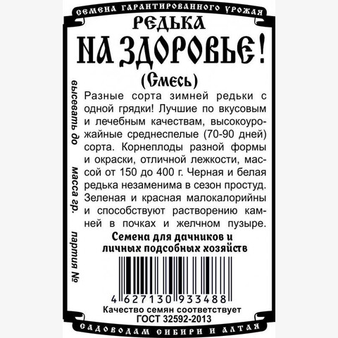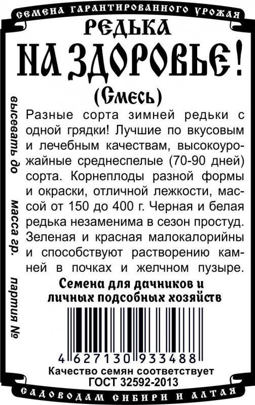 Разные сорта зимней редьки с одной грядки! Лучшие по вкусовым и лечебным качествам, высокоурожайные среднеспелые (70-90 дней) сорта. Корнеплоды разной формы и окраски, отличной лежкости, массой от 150 до 400г. Черная и белая редька незаменима в сезон простуд. Зеленая и красная малокалорийны и способствуют растворению камней в почках и желчном пузыре.