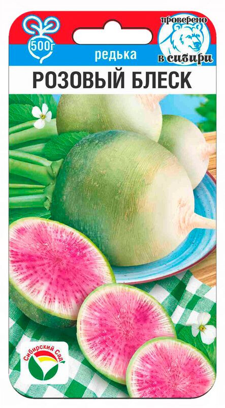 Необычный сорт китайской редьки (дайкона) с оригинальной розовой окраской мякоти корнеплодов. Плоды этого сорта округлые, выровненные, светло-зеленые, почти белые. Мякоть розово-красная, нежная, не волокнистая, очень вкусная и полезная ,может быть украшением для любого стола. Сорт долго сохраняет товарный вид после уборки урожая, хорошо хранится зимой. Рекомендуется как деликатесная закуска к праздничному столу, для приготовления свежих салатов. Для этой культуры наиболее эффективны летне-осенние сроки выращивания. Посадка в открытый грунт в начале июня по схеме 20*40 см, сбор урожая в августе- сентябре.