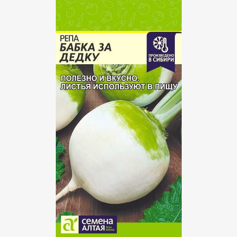 Среднеспелый (60-65 дней) сорт со стабильной урожайностью. Корнеплод округлый, белый с зеленым воротничком, массой 100-120 г. Вкус превосходный. Содержит витамин В1, который благотворно сказывается на работе эндокринной и нервной системы, восстанавливает уровень холестерина в крови и давление. Используют в пищу молодые корнеплоды и листья. Место посадки: рыхлые плодородные легкие почвы с нейтральной реакцией. Кислые почвы необходимо известковать. Можно размещать после любых овощных культур, кроме крестоцветных: капусты, репы, редиса, дайкона Освещение: требователен к свету, в тени дает длинную ботву и маленький корнеплод Предпосевная подготовка: не требуется Сроки посева: для получения раннего урожая при прогревании почвы до 12°С (начало-середина мая), для получения корнеплодов на хранение, посев проводят в конце июня – июле Посев на рассаду: не предусмотрено Посев в грунт: сеют в борозды, семена раскладывают на увлажненный грунт, присыпают землей, хорошо уплотняют, обильно поливают водой. Глубина заделки 2-3 см. Схема посадки 25х25 см. Посевы рекомендовано накрывать укрывным материалом до появления всходов. Пикировка/перевалка: не предусмотрена Уход: не допускать переувлажнения посевов и пересыхания грунта, полив должен быть регулярным во избежание растрескивания корнеплодов и появления горечи во вкусе. Использование свежих органических удобрений под репу не рекомендуется, так как они вызывают дуплистость и загнивание корнеплода. Хорошо отзывается на рыхление, окучивание и внесение фосфорно-калийных удобрений