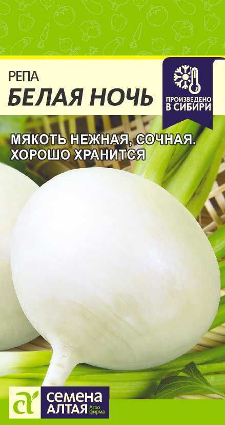 Сорт среднеспелый, от всходов до начала потребления ? около 70 дней. Корнеплод белый, диаметром 10-12 см, погружен в почву на 2/3. Мякоть нежная, сочная. Лежкость хорошая. Место посадки: рыхлые плодородные легкие почвы с нейтральной реакцией. Кислые почвы необходимо известковать. Можно размещать после любых овощных культур, кроме крестоцветных: капусты, репы, редиса, дайкона Освещение: требователен к свету, в тени дает длинную ботву и маленький корнеплод Предпосевная подготовка: не требуется Сроки посева: для получения раннего урожая при прогревании почвы до 12°С (начало-середина мая), для получения корнеплодов на хранение, посев проводят в конце июня – июле Посев на рассаду: не предусмотрено Посев в грунт: сеют в борозды, семена раскладывают на увлажненный грунт, присыпают землей, хорошо уплотняют, обильно поливают водой. Глубина заделки 2-3 см. Схема посадки 25х25 см. Посевы рекомендовано накрывать укрывным материалом до появления всходов. Пикировка/перевалка: не предусмотрена Уход: не допускать переувлажнения посевов и пересыхания грунта, полив должен быть регулярным во избежание растрескивания корнеплодов и появления горечи во вкусе. Использование свежих органических удобрений под репу не рекомендуется, так как они вызывают дуплистость и загнивание корнеплода. Хорошо отзывается на рыхление, окучивание и внесение фосфорно-калийных удобрений