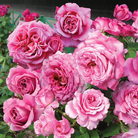 Цветы крупные, 8-10 см в диаметре, густого и мягкого сиреневого-розового цвета. Цвет сложный, с переливами от насыщенных маджентовых до более светлых лиловых, фиолетовых, лавандовых тонов. К центру цвет теплеет, читаются кирпично-розовые и даже шоколадные тона. Цветы густомахровые, набивка плотная, число лепестков может достигать 70 шт. Лепестки изящные, слегка скручиваются. По краю лепестков есть деликатная бахрома, она придает цветкам особый кокетливый шарм. Они выглядят слегка взъерошенными, но ровно настолько, чтобы быть оригинальными, а не косматыми. Форма цветка – бокал, из-за супермахровости цветы кажутся сферическими.