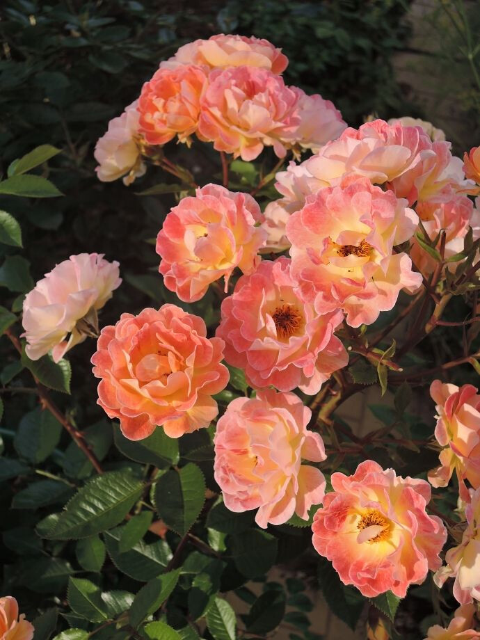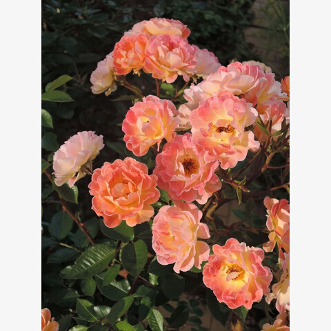 Цветки обладают красивой золотисто-абрикосовой расцветкой. Основная окраска у них оранжевая. Форма шаровидная. В среднем диаметр каждого цветочка составляет 4-5 сантиметров. По количеству лепестков цветок считается умеренно махровым. Бутоны собираются в отдельные соцветия. На одном стебле размещается по 4-5 цветков. Они обладают сильным приятным ароматом.