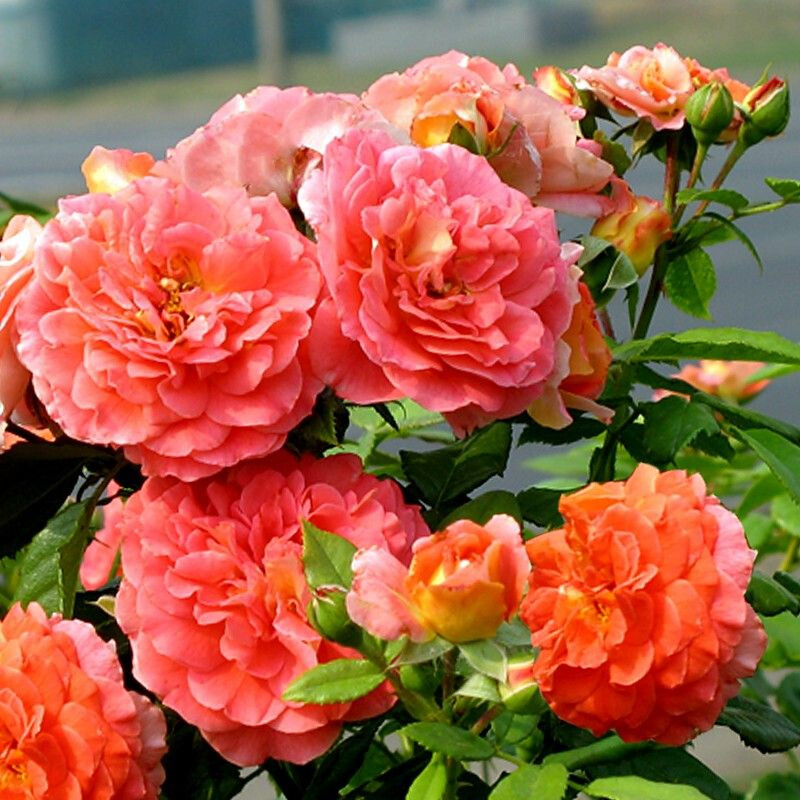 Сорт заявлен как жаро-, стрессоустойчивый и хорошо переносит длительный контакт с дождем. Сильнорослые объемные кусты характеризуются как ветвистые, с вертикальными прочными побегами, покрытыми редкими шипами. Высота куста заявлена оригинатором как 70-90 см, а ширина 50-60 см. Стебли имеют хорошую облиственность. Глянцевая листовая пластина окрашена в темно-зеленые тона, имеет сильный блеск и мелкие зазубрины по краям.