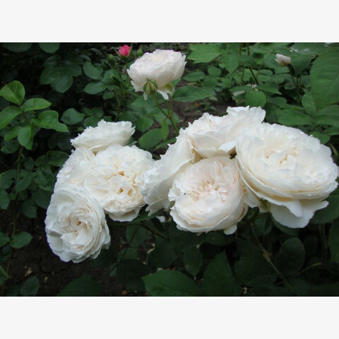 Бутоны округлой формы окрашены в кремовый цвет с сильным розовым подтоном в виде мазков или пятнистых вкраплений. Чашевидные крупные цветы диаметром 8-10 см в полуроспуске и в полном роспуске окрашены в сливочно-белые тона с кремово-желтоватым оттенком без пестроты. Густомахровые бутоны наполнены 80-90 лепестками, соцветия состоят из 1-3 цветков. Куст источает сладковатый, с явственными нотками меда и миндаля, аромат.