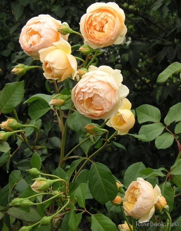 Джуд зе Обскур растет довольно компактно, несмотря на то что кусты в целом сильнорослые. Высота и диаметр во многих случаях могут совпадать: первый показатель – 100-120 сантиметров, второй – 105-130 см. Кусты покрыты листвой умеренно, при этом она темно-зеленая, блестящая, довольно декоративная даже при отсутствии цветов. Стебли имеют колючие шипы, поэтому ухаживать за розами стоит аккуратно.
