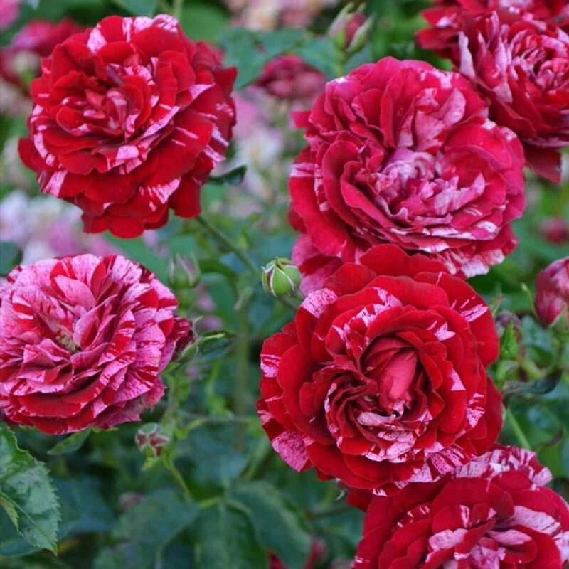 Что касается цветов, то они удивительным образом просятся в сравнение с хамелеоном благодаря наличию полос и мазков бледно-розовых, иногда почти белых оттенков на фоне тёмно-красного тона раскрытого цветка. Основной цвет лепестков интенсивно-красный, однако общая палитра цветка во многом зависит от количества и ширины светлых штрихов. Чем их больше, тем более светлым становится общий тон. Именно поэтому цветущие кусты кажутся переливчатыми и неоднородными в палитре: на одном могут быть тёмные и светлые соцветия, но все они имеют интенсивный тон.
