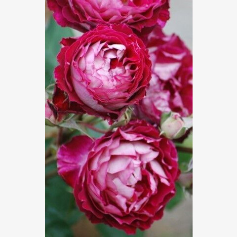 Французская роза – это мощное, компактное, но высокорослое растение, которое в благоприятной среде может вытянуться в высоту до 150 см, а в ширину до 70-80 см. Характеризуется розовый кустарник обильной облиственностью мелкими оливково-зелеными листьями с заметным блеском, небольшим количеством острых шипов, гибкими и сильными побегами, а также развитой корневой системой. В сезон вегетации на каждом стебле формируется малоцветковое соцветие, состоящее из 3-5 бутонов.