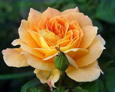 Едва взглянув на эту красотку, вспоминаешь сорт Graham Thomas, хотя ее мандариновый цвет слишком яркий по сравнению с розами Дэвида Остина. Цвет постоянно меняется: иногда внешние лепестки ярко-желтые, в то время как внутренние абрикосовые или даже розовые. Цветки появляются по одному или в небольших кистях, и распускаются медленно, в течение несколько дней, так что эта роза больше подходит для сухого климата. Лепестки выгорают до кремовых на кончиках, что подчеркивает их волнистую форму. Подходит для срезки. (ARE)Золотисто-желтые цветки с мандариново-оранжевыми краями. Оригинальная форма, лепестки заостренные, так что цветок напоминает георгин. (MEI)(http://www.rosebook.ru)