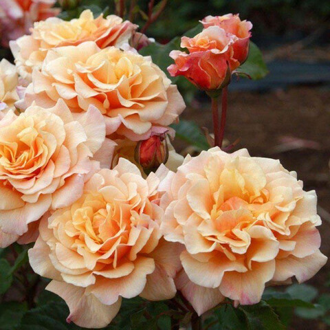 Карамелла – роза кустовая, с прямостоячими побегами, ветвистая, вырастает в высоту до 120 см, в ширину разрастается до 70 см. Кусты имеют крупную и блестящую густую листву темно-зеленого окраса с оттенком хаки.
